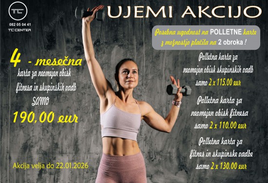 Dijaki, študenti, upokojenci lahko koristijo 10% na vse skupinske vadbe in fitnes. Popusti se med seboj ne seštevajo. Na akcijske cene ni dodatnih popustov. Katerokoli karto za fitnes ali skupinske vadbe lahko poravnate na recepciji TIMFIT-a z gotovino ali plačilnimi/kreditnimi karticami; ali na transakcijski račun številka 61000-0011579140 , odprt pri banki DHL d.d.